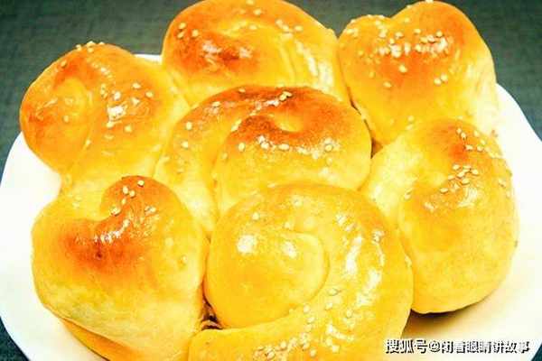 发酵好以后在生坯上刷上蛋液、撒点芝麻,放入烤箱中,150度烤25分钟。25分钟以后取出,刷上蜂蜜水再烤5分钟,能拉丝的加成蜂蜜小面包就能享用了。