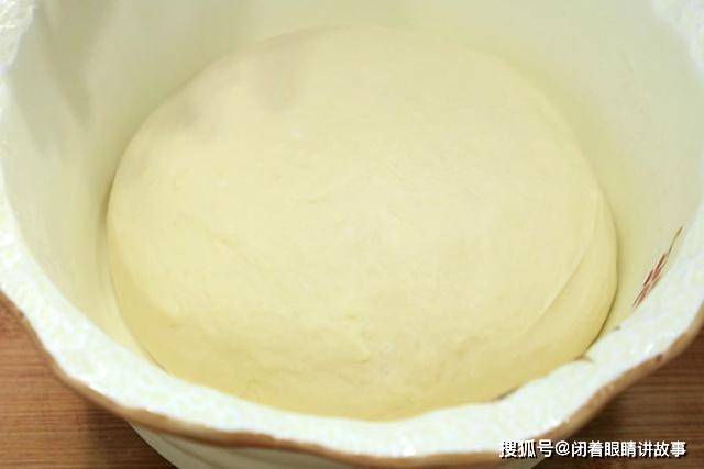 盆中放入适量的面粉,加入酵母3克,适量的白糖,用牛奶和面,搅成面絮后揉成团,发酵至原来的两倍大。