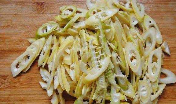 2,切成小薄片,也可以拍一下再切,我买回的春笋非常鲜嫩,这样切就很好吃