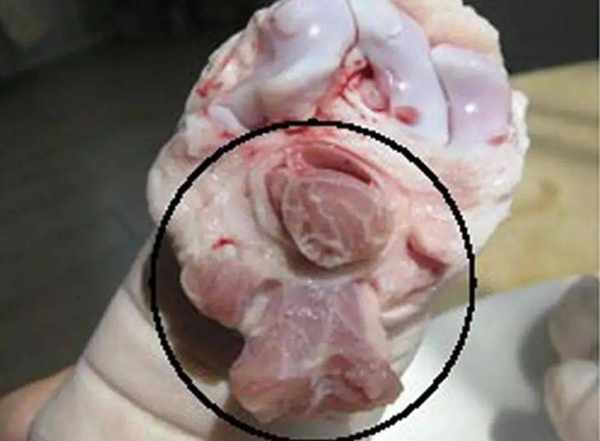 我们再来看下猪蹄的脚趾。前后蹄的脚趾是不同的,通常情况下,猪前蹄的脚趾是一样长的,而且比较均匀对称,用手摸一摸感觉很光滑。而猪后蹄的脚趾是不对称的,一个短一个长,而且表面较粗糙,这一点是很容易区分出来的。另外大家在购买猪蹄的时候,还要看下猪蹄壳是否去掉了,猪蹄壳会压秤,买回家也得扔掉。