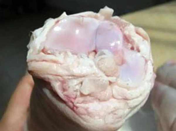 大家在购买猪蹄时,如果看到过于白净的猪蹄,一定要慎重,这种往往是黑心商家用双氧水、火碱等化学物质处理过的。双氧水可以给猪蹄“美白”,火碱和亚硝酸钠会使猪蹄看起来肥嫩又新鲜。这些成分都是有毒的,吃起来不仅口感不好,对人体健康也非常的不利。正常去毛后的猪蹄是淡黄色的,不会特别的白净。同时,被药水浸泡过的猪蹄,通常个头比较大,蹄瓣也会被泡得分开,摸起来又黏又硬,还能闻到淡淡的药水味。