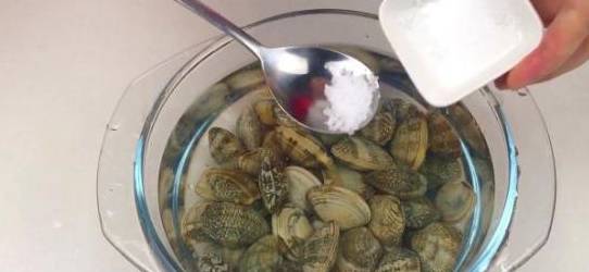 1、把买回来的花蛤放入清水中,加入盐,静置3个小时候,等待花蛤把沙子吐干净;