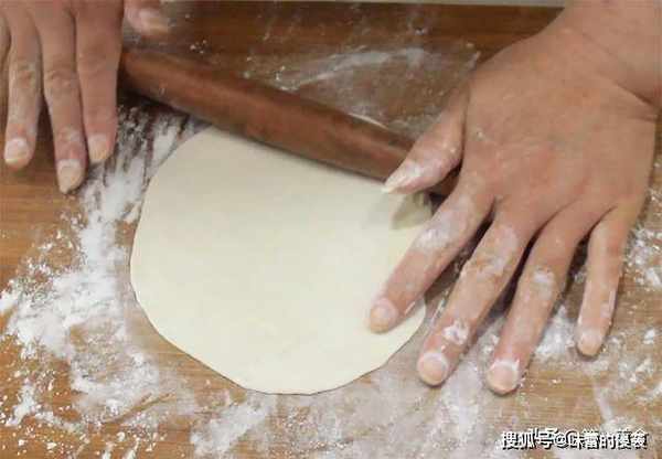 圆面坯团好以后不要着急擀饼,饧上10分钟再擀,更容易擀开擀薄