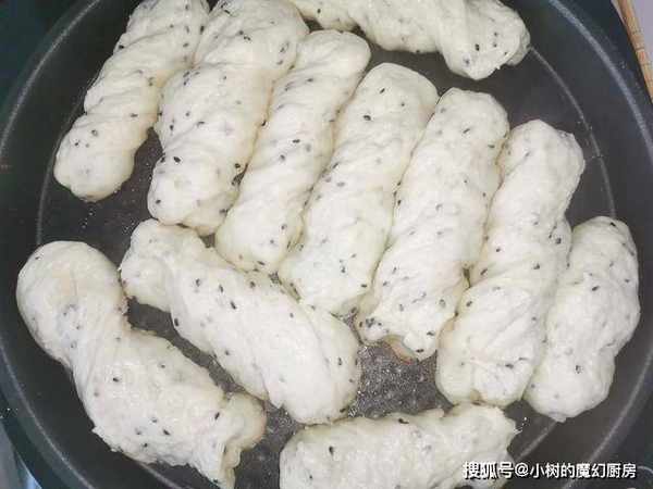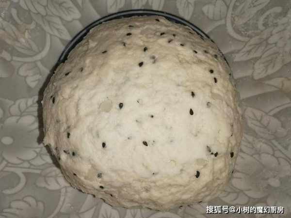 食材准备:200克土豆,200克普通面粉,100克温水,3克酵母粉,2克食盐,适量熟黑芝麻