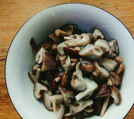 5.香菇用开水焯熟,捞出,过一遍凉水,控干水分