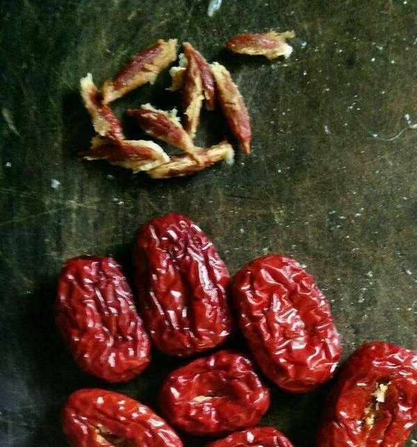 1、红枣不要准备太多,几个红枣就够了。不过要提前泡一下,然后去枣核,这样煮出来的鸡汤味道更甜。
