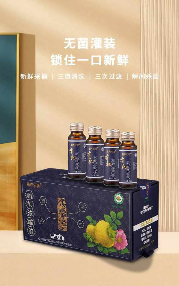 也正是因为刺梨的好处被越来越多人所研究证实,贵州省近些年在刺梨产业上投入了不小的精力,同时与各大相关部门合作,把刺梨产业打造成为生态、健康、时尚的新产业。也正是有了政策的加持,葫芦元坊也顺势推出了有机刺梨浓缩液。