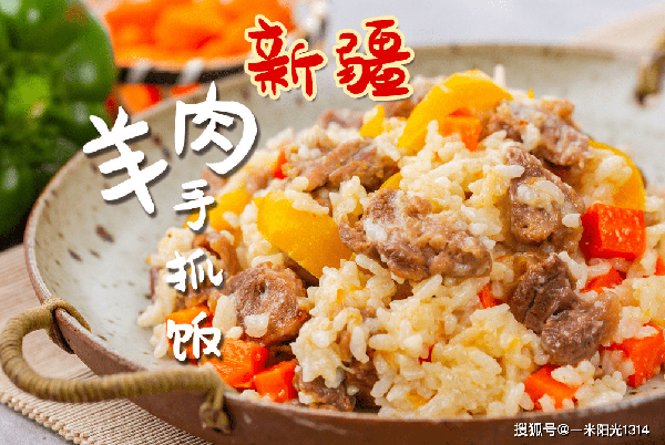 是新疆维吾尔、乌孜别克等民族人民喜爱的一种饭食,抓饭的主要原料有大米、羊肉、胡萝卜、洋葱和清油。用它们混合焖制出来的饭,油亮生辉,香气四溢,味道可口。除此而外,还用葡萄干、杏干、桃干等干果做抓饭,称之为甜抓饭或素抓饭。