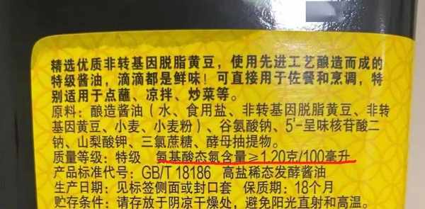 “氨基酸态氮”含量越高,则酱油品质越高,鲜味也就会越浓。根据我国食品相关标准,酱油中的氨基酸态氮含量可分为4个等级: