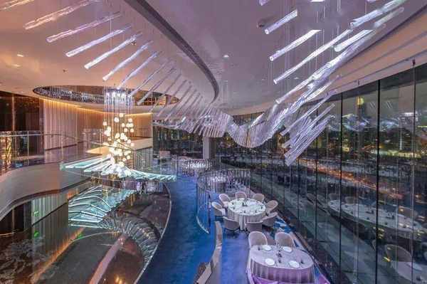 由近万根水晶棒装饰的大厅天花