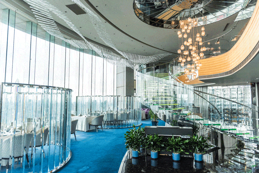 “41层旋转餐厅,一键游览高空风景”