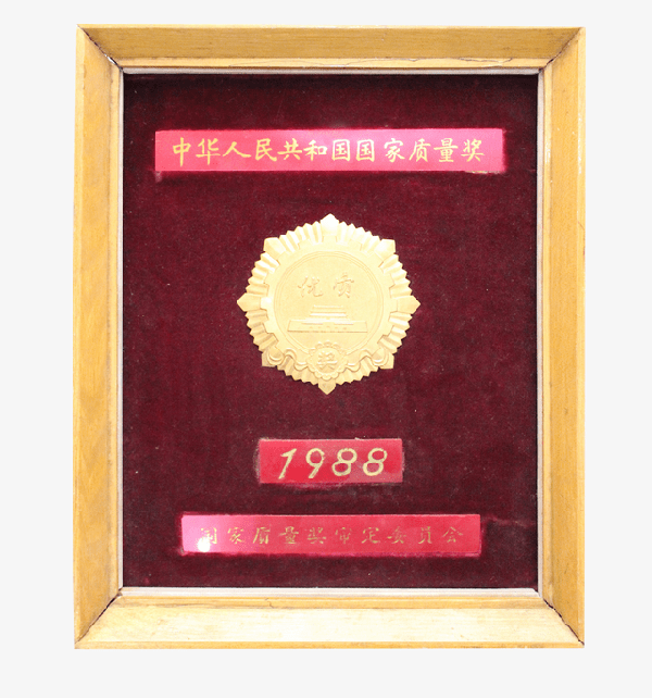 ▲在1988年,第五届白酒国家质量评比上,武陵酒获得的金质奖章