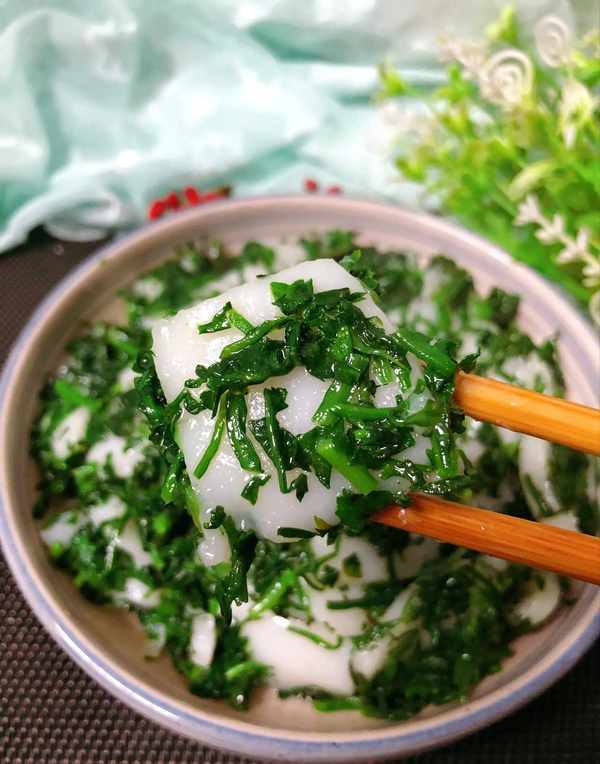 但是每年的二三月份会有一种独特的做法,要用上新鲜采摘的野荠菜,焯水剁得碎碎的,搭配上年糕开炒