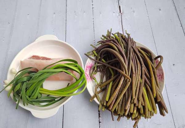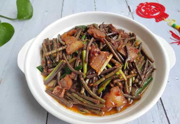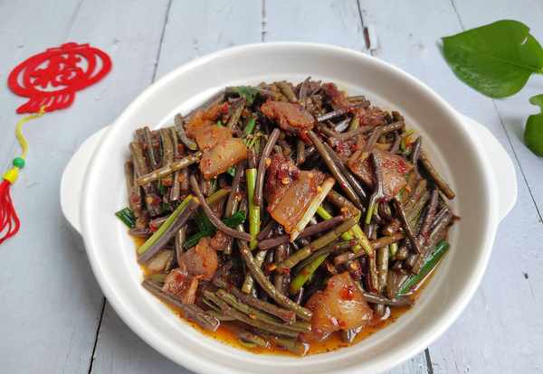 主料:蕨菜1把;肥猪肉1块。