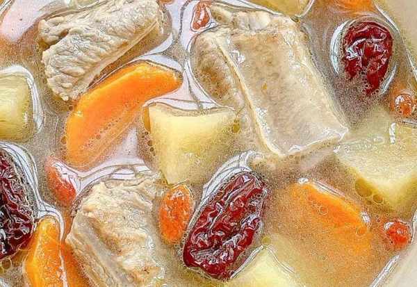 4、接着再放入山药和红枣,继续炖煮半个小时。然后再放入枸杞子,撒上食盐再炖煮五分钟即可出锅。