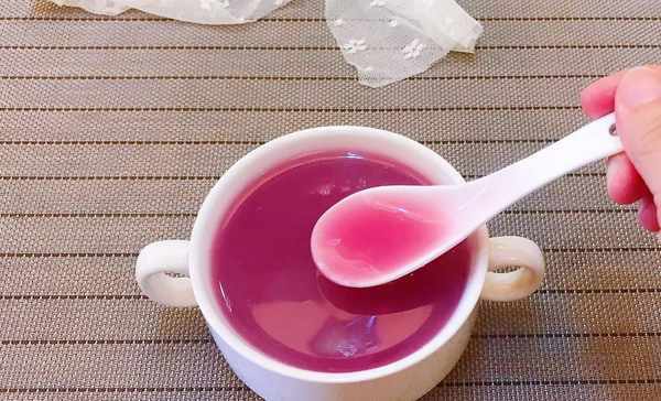1. 取去皮紫薯50克切小块,泡发银耳100克放进破壁机,加清水300毫升,启动豆浆键,二十分钟左右,自动榨成一杯口感细腻的美颜羹。