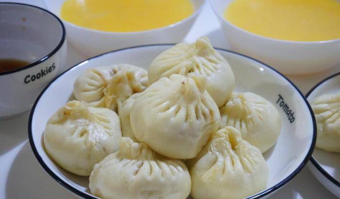 天津人吃包子讲究配着一碗稀的,也就是稀饭,一般就是小米粥,或者夏天是绿豆稀饭,到包子铺吃都有免费赠送的,还有就是小咸菜。自己在家吃可以煮棒子渣粥,大米粥等。