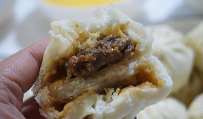 包子皮是“一拱肥”,用老肥搭脑子也就是隔夜的老肥加上死面,和好后拱起来就用,这样的方法不需要发面,面皮洁白,柔软还有咬劲。捏出来的褶子要18个褶,个个匀称,薄皮大馅。这样的包子皮,比发面的好吃太多了,因为可以吸收汤汁,肉汤的包子皮,而不是馅是馅,皮是皮,完美的结合在一起才好吃。