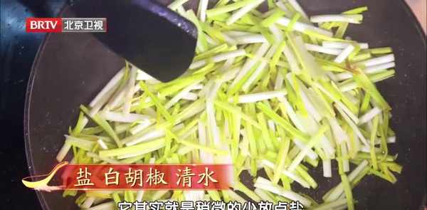 加入盐和胡椒粉,加少许水拌匀后倒入装有蒜末的锅中。然后加入炒鸡蛋,摊开均匀,就可以出锅了。