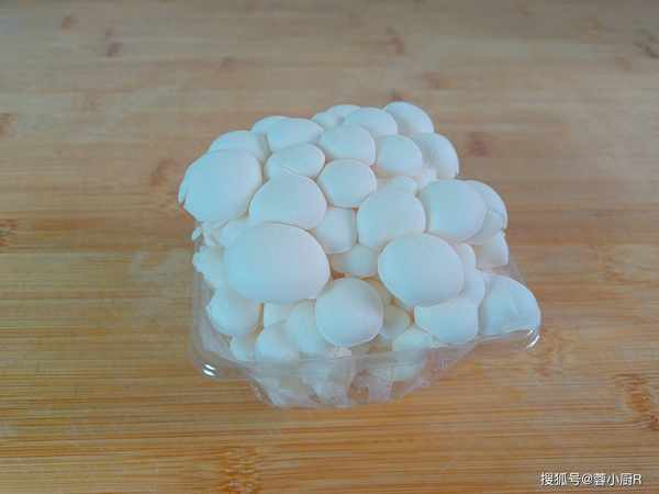 1、今天的蘑菇我用的白玉菇,100克就够了,先去掉根部,再清洗干净。