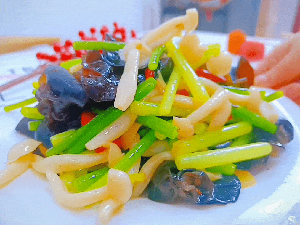蒜苔清甜,白玉菇爽滑,搭配木耳的脆嫩,妥妥的一道家常下饭菜。