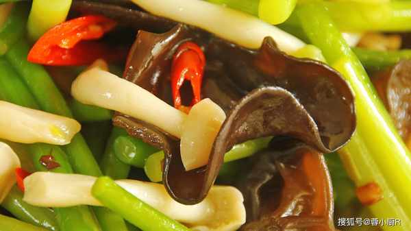 食材清单:蒜苔、白玉菇、木耳、小米椒、蒜