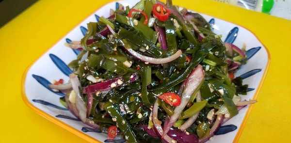 4.这样做的凉拌紫菜片,保证吃一口不腻。香辣可口,爽口开胃。酒饭下,胜过大鱼大肉!不比饭店里卖的小冷柜差!喜欢的家人可以试试。