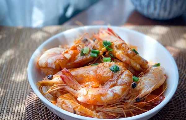 虾仁、蒜头、油、黄酒、盐、糖、白胡椒粉、黑胡椒粉、辣椒粉、花椒粉、葱花