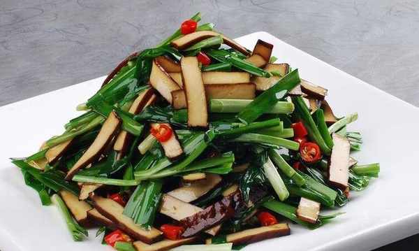 主料:韭菜、香干(豆腐干)、五花肉片