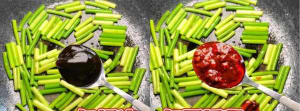 4:锅底放食用油,加入蒜蓉汤炒至夏,加一勺生抽和蚝油,加一勺红豆沙,炒匀。