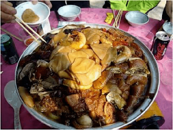 我曾经就有幸被邀请到江门参与过一次盆菜的宴席。