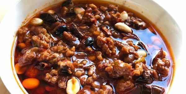 1.肥肉剁细,放入50%热菜籽油中煮至焦黄,吐油捞出待用,碗中留底油,郫县水加入特雷西,泡椒,粘稠米。将饼炒至花椒、花椒爆香。待凉后,加入姜、蒜和泡菜继续翻炒,加入高汤煮滚;