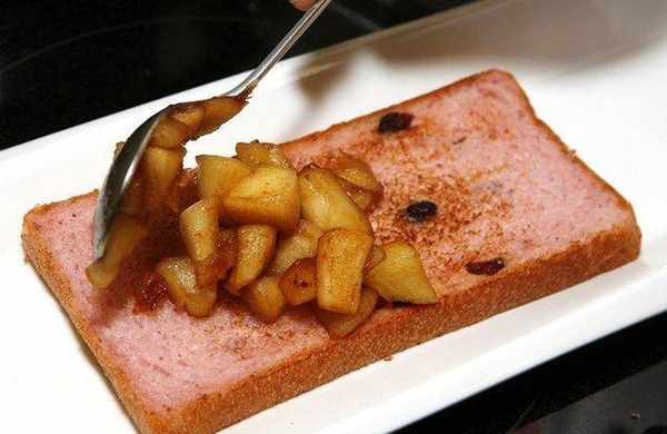 红麴土司或白土司2片、苹果2颗、饼干适量、奶油块适量、打发鲜奶油适量、榛果酱10g、香草酱10g、蜂蜜10g、肉桂粉23g