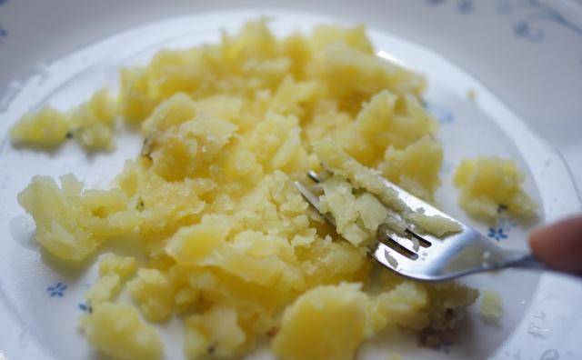 把马铃薯放在餐盘中,稍微压扁形成一层小床垫。
