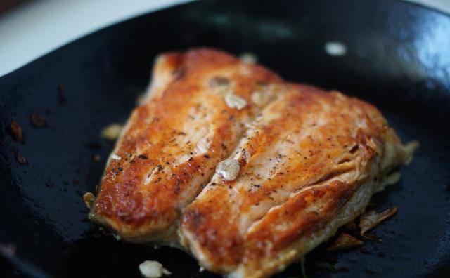 煎三文鱼时,锅里加点它,鱼肉不碎,鱼皮不破,而且不糊锅!孩子还小时我们晚餐在公婆家搭伙,公公是标准的海口人,每餐都要有鱼,所以一周至少能吃个四五次,但现在我家一周大概只吃一次海鲜类,而且十次里有八次是鲑鱼,不是因为特别喜欢,而是抹点盐干煎就能吃,对我来说好方便,总是用它来填补最不擅长的那块,我家冻库里更是随时都有库存,发现不难的鱼料理一定试试,即便用的依然是鲑鱼,但多少能增添点新鲜感~