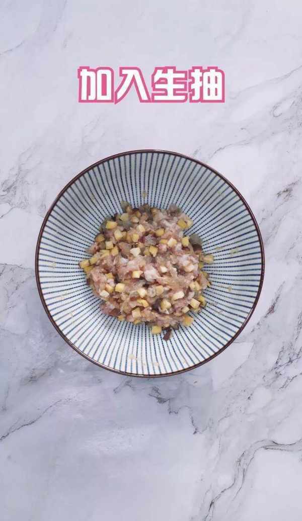 猪肉洗净,剁成泥,虾仁剁碎,香菇切小丁;
