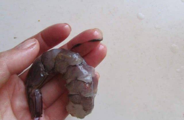 2、扭虾尾的时候不要扭得太快,轻一点扭不容易将虾线扭断了,这样再拽虾线的时候也很容易就将虾线拽出来了。