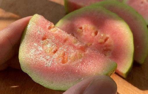 捧在手上,就能闻到浓浓的香味,切开果肉,就像西瓜一样红彤彤的,非常诱人~不管是闲暇时,还是饭前、饭后都可以来一个,解腻又饱腹,多吃也不怕胖,果皮到果心都可以吃,可食用率极高!