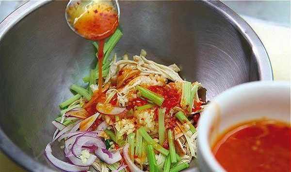 Step2.拌匀:做法1、芹菜段、洋葱丝与酸辣酱的材料拌匀。