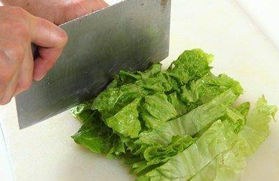 小白菜切成每段约3公分的长度,蛋液打好并加入白醋、太白粉加30c.c.水调好备用。