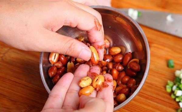 把盐炒花生去皮备用。