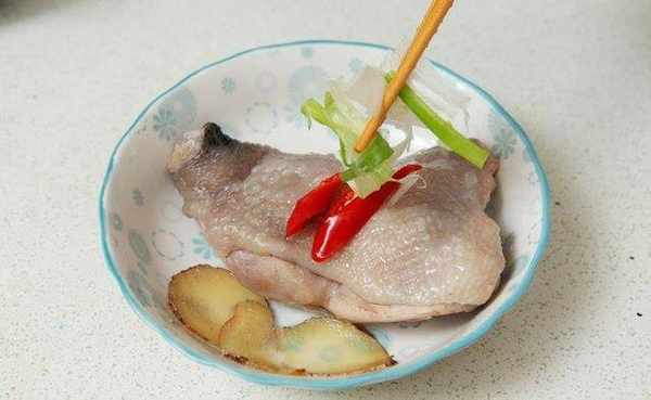 去骨鸡腿1支、葱段约3根量、辣椒片适量、姜片45片