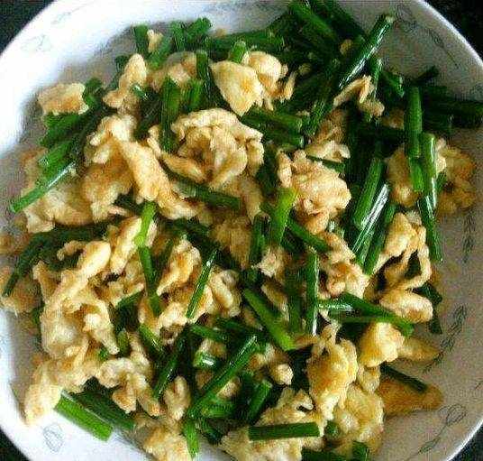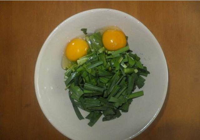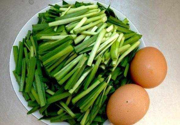 原料:鸡蛋3个,韭菜半斤,料酒、食盐少许,食用油