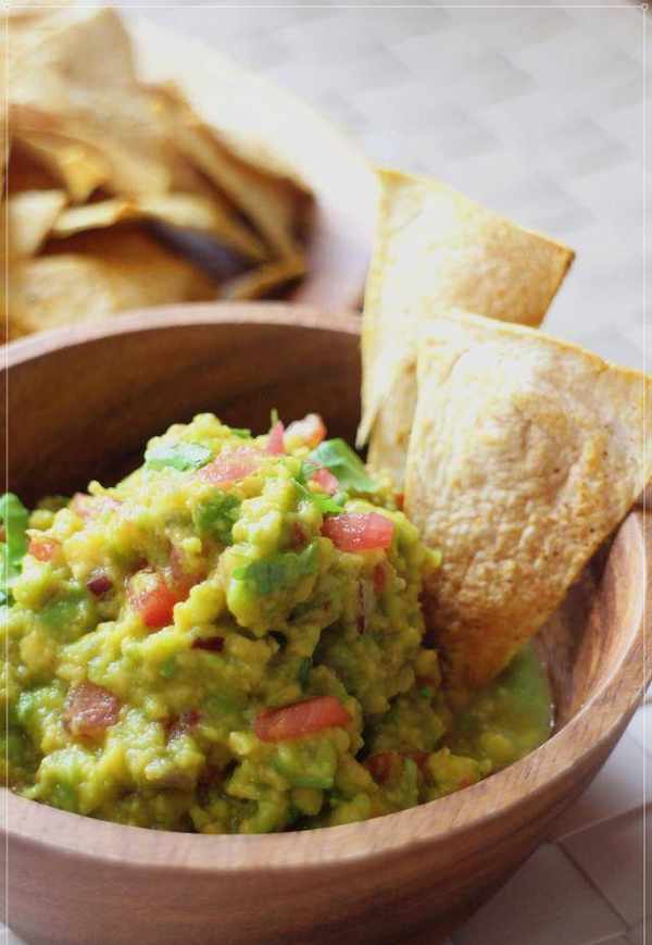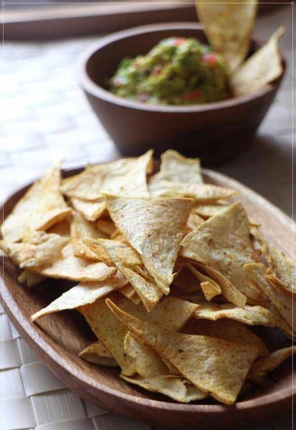 用这个半自制的玉米脆片配上清爽的酪梨莎莎酱,我觉得这酪梨莎莎酱在这里全然是主角,不能称为佐餐酱,而是可以大口大口当沙拉来吃。