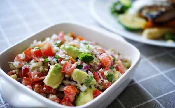 将番茄去皮切丁、洋葱、香菜切碎备用,平时常做的莎莎酱会加很多蒜头和鱼露,阿费大师这款走清爽风,运用酪梨特殊的坚果香和滑顺的口感。