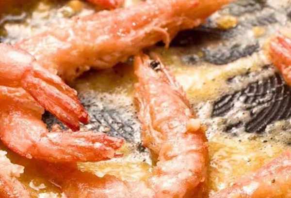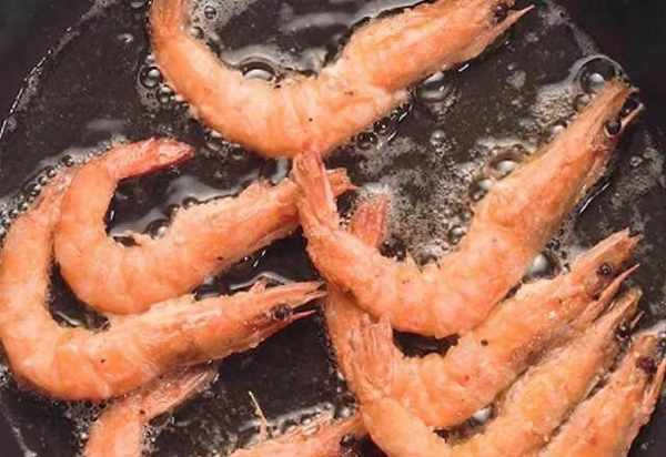 Step5.下油,以中火把虾半煎炸约2-3分钟,至虾身变红色,捞起,沥油。Step6.小火下牛油,炒香蒜蓉,加入咸蛋黄。