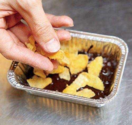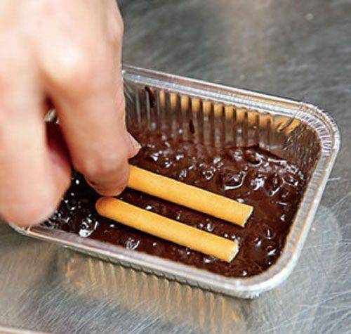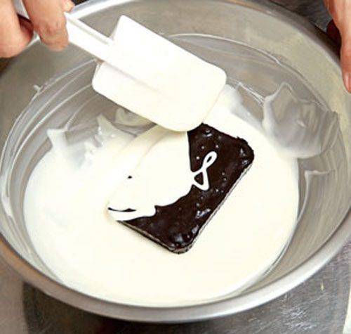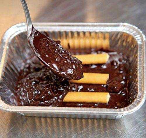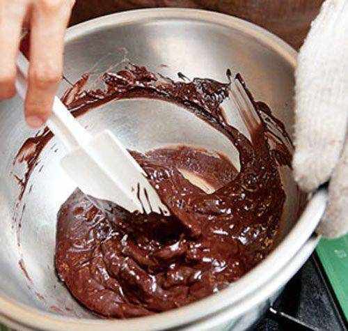 Tips:可用大波露巧克力取代苦甜巧克力砖;若喜欢甜味较重,也可用牛奶巧克力砖取代。也可以用微波炉加热融化巧克力,但必须每15分钟检视一次并反覆加热,避免烧焦。