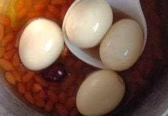 枸杞煮鸡蛋做法:枸杞一小把与鸡蛋同放清水里煮熟,鸡蛋熟后,去除去壳,喝汤吃蛋,连用3-5天。