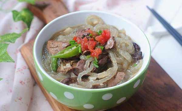自己在家里做米粉,那就更随意了,只要是家人喜欢的,就没什么禁忌了,比如我家老爸,特别喜欢动物内脏,做得多了,什么鸭血粉呀、猪肝粉呀、猪大肠粉呀......天天吃都不会厌烦,今天杀了只鸡,特意做了鸡肝红薯粉,红薯粉是粗粮,做成粉却特别软和,老人孩子都喜欢。