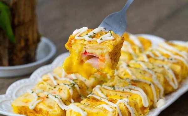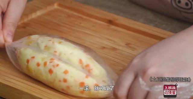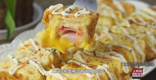 调好的土豆泥,中间包裹着蟹柳和咸香的芝士,外层再卷上厚厚的鸡蛋,口感层次丰富,软嫩香甜,老人小孩都爱吃!